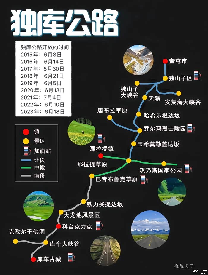 2023年6月22日独库公路的通行时间调整为早上7时至晚上9时,一般为每年6月开通十月之后至次年5月封闭无法通行,我搜集历年的独库公路开通时间给大家参考独库公路开放的时间点
