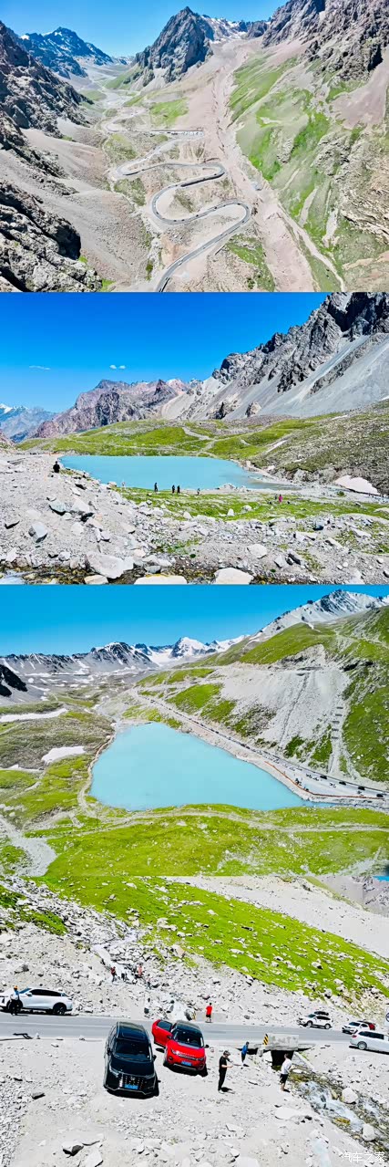 我这次选择走独库公路半程环绕伊犁环线一圈进行自驾游,我先独库再去赛里木湖是因为路线循序渐进从见到众多绿色的小湖泊增加雪景后来是草原+雪景组合最后到达赛里木湖就相当于是把湖泊+草原+雪山这些组合到一起合影返程回家!如果开始就看过了组合体那么后边单独拎出来似乎就显得有点厌了!更重要的是先进如独库公路以免遇到临时封路无法驶出而耽误返程时间