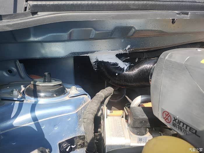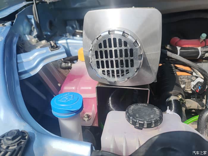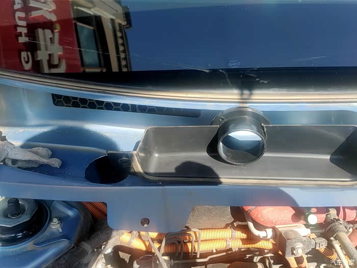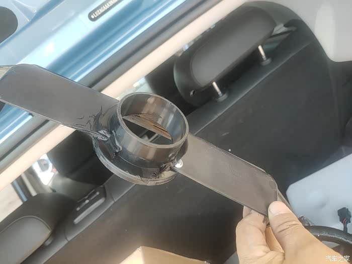 车子外循环进风口的盖子中间开个孔,然后用柴暖自带的罩子匹配上去,螺丝固定加挡风玻璃胶加固,完美