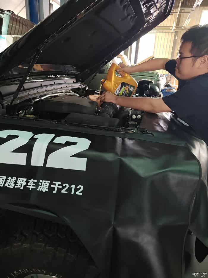 车辆行驶2700公里,来店首保 更换机油 、 更换桥油过程,保养师傅很认真,点赞! 212长风版真是很霸气,路上回头率贼高!