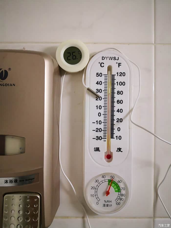 普通家用温度计只支持50度显示,为了测试,专门买了个测温计,-50至70度测量范围。这个测温计升温特别敏感,但从高温地方拿到低温地方,显示数据15秒钟下降1度吧,也就是说如果温度数值在变,那么每差4度时间上实际是滞后1分钟的。