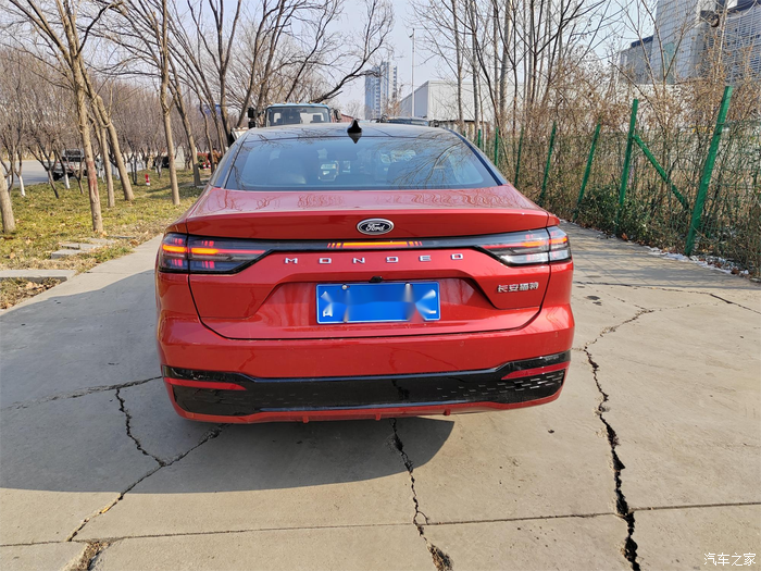 生活本就平淡,还好有新款蒙迪欧当调味剂。它的外观完全长在我的审美上,年轻化的设计取向特别对味:扁平犀利的大灯搭配三段式日行灯,与熏黑八边形像素阵列格栅融为一体,发光车标点亮后辨识度高,溜背轿跑线条更是自带蓄势待发的动感。每天下班拖着疲惫的身子走向它,远程启动的瞬间就被治愈——大灯逐次点亮、隐藏式门把手自动弹出收回,瞬间就让奔波的日子有了盼头。靠自己拿下这样一台酷车,不是鸡汤,是实打实的满足,说谎我是狗!