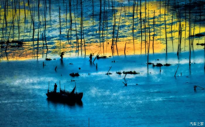 11.霞浦县的海上甲骨文(又称海上迷宫),位于该县盐田镇南湾村,是滩涂景色的奇观。由于滩涂养殖和赶海的需要,在近海滩涂上形成了很多不完整的围堰,及低矮的各种曲率的长堤和短堤。退潮时它们展露无遗,涨潮时随着海水的升高,部分围堰和海堤被淹没,没有淹没的海堤形成了奇妙的图案,如海上迷宫,亦如海上甲骨文。小渔船在涨潮时可以逐步进入,如在迷宫中行驶,格外有趣。