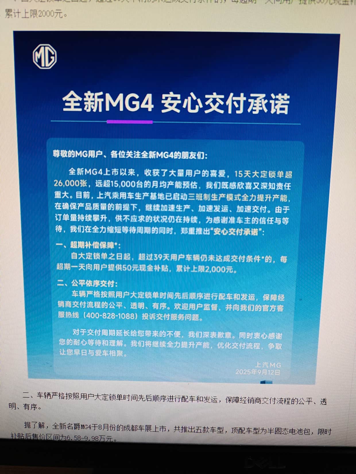 本人2025年10.28在长沙名爵雀园路MG体验中心大定MG4并交付2000元APP和3000元4S定金一共5000元。一直到2025年年底都没有销售和我联系交车。直到本人打400名爵售后电话后,4S店陈经理才2026年1月10号联系本人并告知原服务我的销售曾小姐已离职造成车辆延期交付并答应在月底前交车。1月13号陈经理又联系本人告知车辆在1月14号能到店约定我1月15号来交车。1月15号本人按约定到店交车,但接待本人的罗销售拒不执行车企承诺的安心交付费和购置税兜底造成本人不能顺利接车