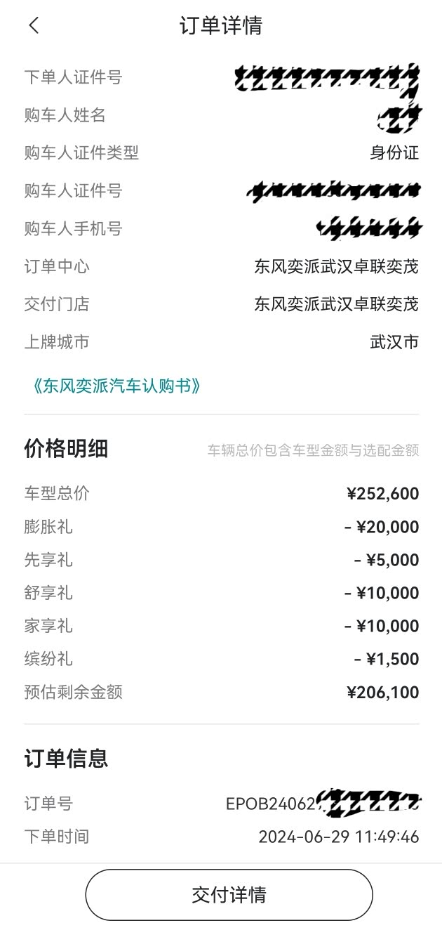 初次邂逅这款新上市车型,从配置到外观都正中我的心意,更惊喜的是落地价远低于预算。当时想着新车上市或许没有现金优惠,便没过多议价,只争取到一些小赠品、精致车模,以及 4 次常规保养。最终落地价 18.4 万左右,详细分解费用:裸车价包含向阳金车漆 1500 元、月影余白内饰 7000 元、零重力座椅 6000 元;再加上保险 5411 元、上牌费 500 元。经过大定抵扣(2000 抵 20000)、厂家补贴 10000 元、报废补贴 20000 元后,最终总支出 184011 元。若不选装个性化配置,17 万就能拿下,对于一款大尺寸纯电车而言,这样的价格着实极具吸引力。