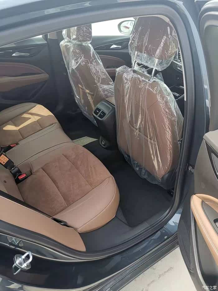 棕色的座椅,真皮+Alcantara,很高级,摸起来也很舒适,夏天不热,冬天不冷。