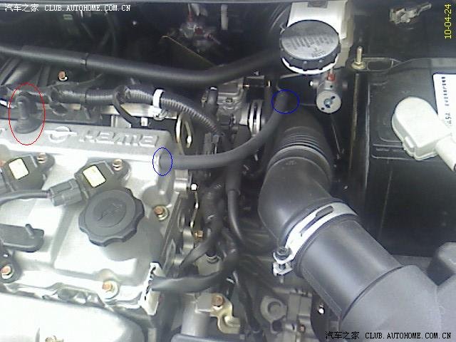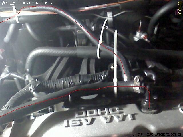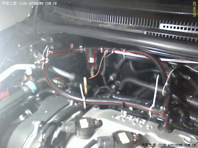 先发张全图,红线部分即为安装的机油透气壶部分。