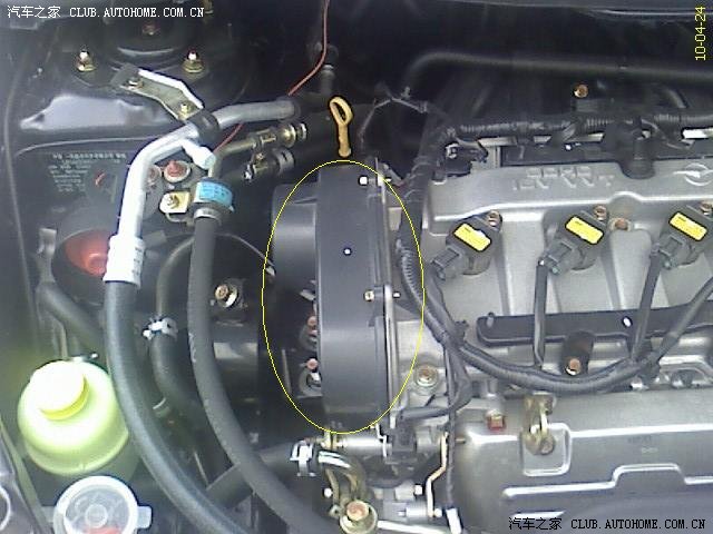 另,据销售MM说,2010款发动机是采用正时链条的,但在使用手册上写的是正时皮带,有知道的DX看看下图黄圈中,到底是链条还时皮带!