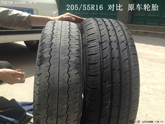 这是一个车友换装的205/55R16的轮胎,效果相比原车轮毂差别我就不多说了