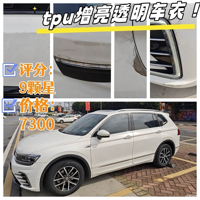 好的车衣,都会比较贵,当时一买车,我就把车衣给安排上了,车衣有分很多种材质,比如tpu材质,也是我认为最好的一个材质车衣了,因为我的车辆在广州行驶,特别多的电瓶车,有时不注意,都会稍微给电瓶车给刮到,我的车衣就给电瓶车刮了好几次,后来,也给刮了车衣的几处地方,只需要更换刮的那一部分就好,里面的漆面是刮不到的,而且透明的车衣,还有增亮的版本,我贴的就是增亮的,每回洗完车子,就跟新车一样,个人建议,车衣是一回事,贴的手工活才是最重要,因为我贴的车衣,质量还可以,却手工活一般,也因为我是第一次贴,以后再贴就明白细节怎么去检查了,不懂就很容易给人忽悠 实用指数:9颗星??????????????????