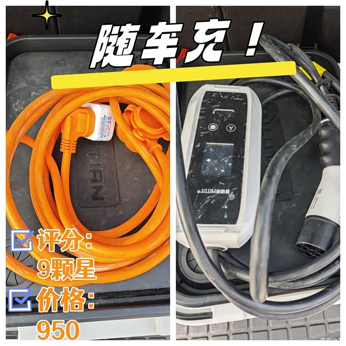 四、随车充 价格:950 因为我的插混最能慢充接口,通过随车冲,可以3.5个小时充满电,纯电续航50公里,够我在城市通勤使用,基本随车充也是我经常用到的工具,在我办公室门口,提供了便携的充电环境, 外出也是方便了许多。