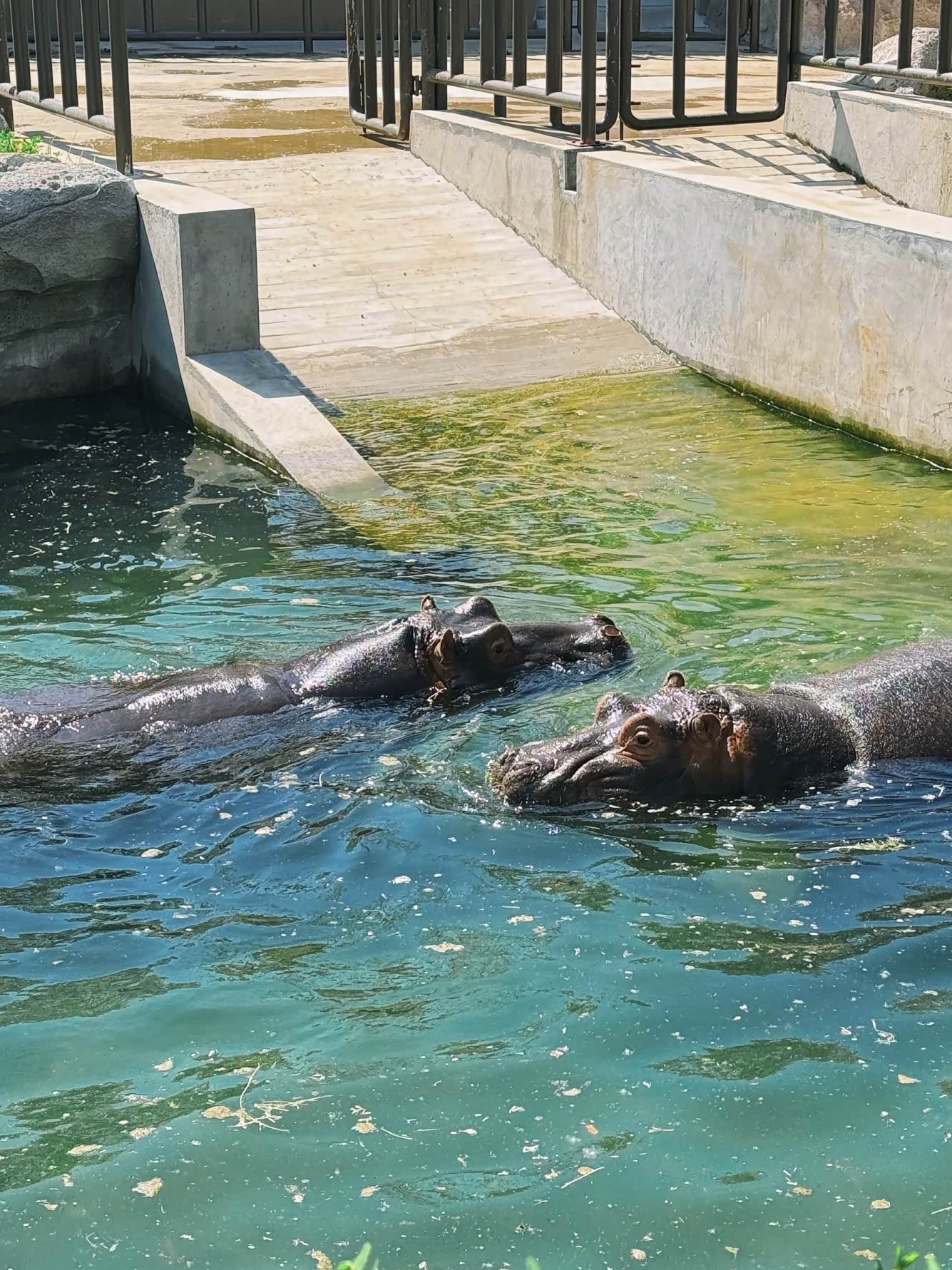 之后,我们看到了卡皮巴拉。它那圆滚滚的身子,呆萌的表情,仿佛对周围的一切都满不在乎,正悠闲地泡在水里,享受着惬意时光。女儿被它这副模样逗得哈哈大笑。不远处,金色熊正懒洋洋地躺在地上晒太阳,庞大的身躯却透着几分可爱。最后,我们来到河马馆。河马那庞大的体型让人惊叹,它大部分时间都泡在水里,只露出圆滚滚的脑袋和宽阔的嘴巴,偶尔张开大嘴打个哈欠,露出锋利的牙齿,十分有趣。