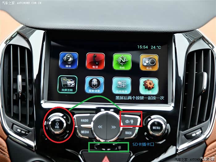 4.将卡插入到中控屏面板SD卡插槽内,等待大概一分钟的样子,屏幕会黑屏,然后按power(vol)+home(房子图标)重启