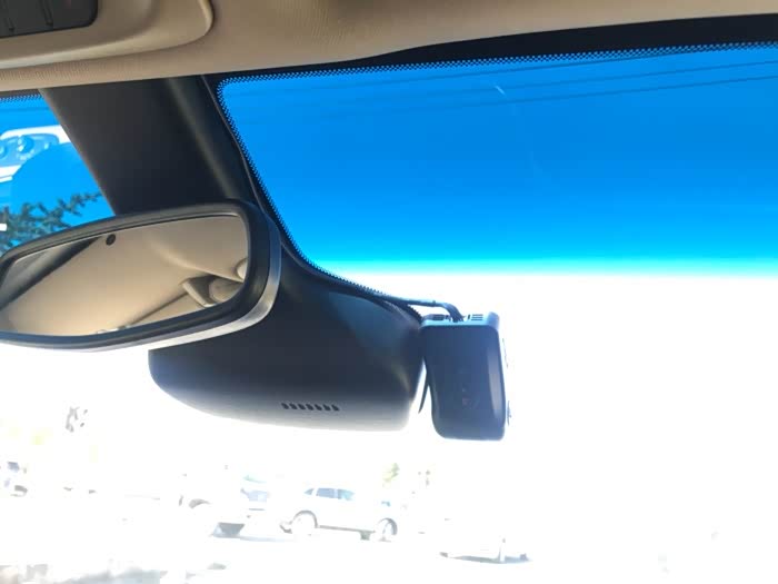 估摸着一个钟头左右吧,车出来了,接车一看把我给气坏了,居然给装主驾位,司机头顶上了,也不跟我说一声!找安装师傅,解释说线不够长。蒙我呢?这线明明是从右A柱引过来的好吗?一看我是明白人,又换了一说法,说旗舰版后视镜后面探头太多是个大黑块,如果装右侧会挡住记录仪镜头。这说法貌似有点道理,但可是上下左右移动到挡不住的地儿不结了嘛!还是不走心呀,而且装的时候也不跟车主商量商量,这别克服务真是要了命了!改,得改!