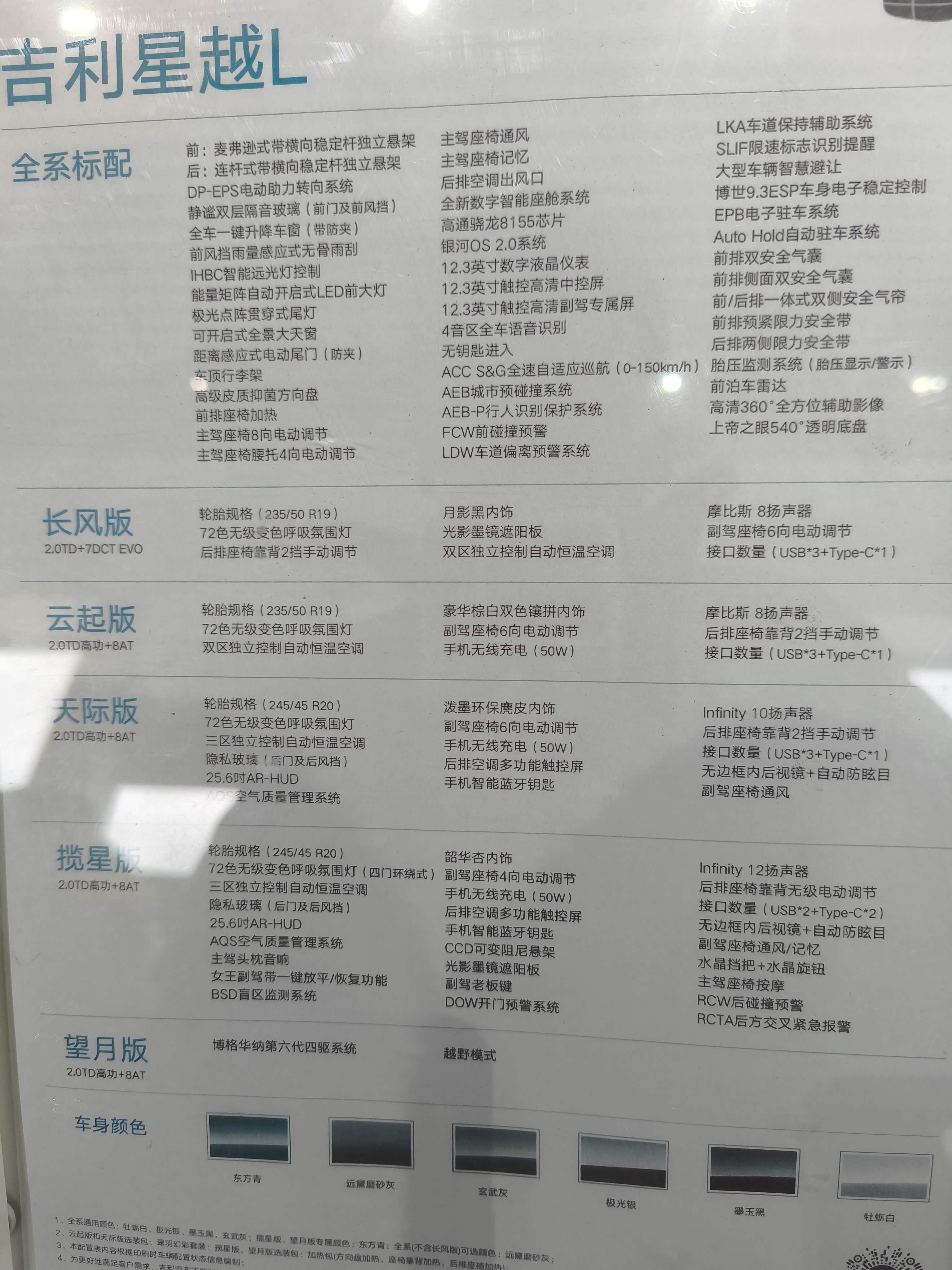 网上很红的星越L也去看过 虽然配置很高 但后期维修保养成本过高 放弃了