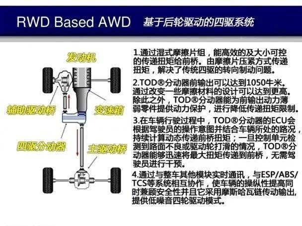 博格华纳TOD双速智能四驱系统,也叫扭矩随选四驱系统,从字面意思理解就是动力扭矩根据车轮需要随时选择应该去哪个车轮,扭矩按需分配,这样好理解多了吧