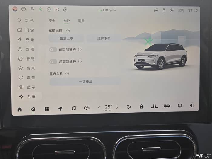 1、通过点击车机控制里的【维护】-【车机重启】进行处理。