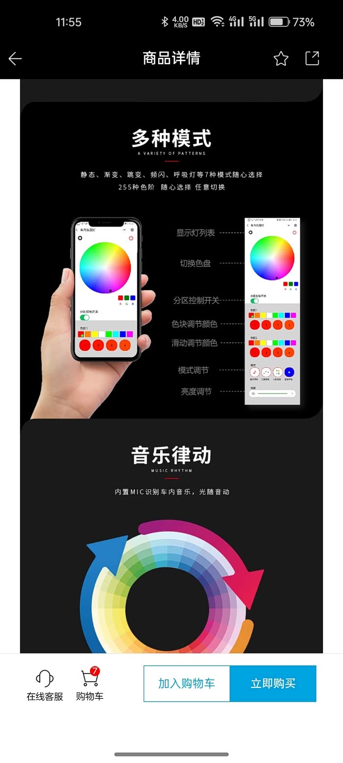 官网的氛围灯质量好、安装方便,但是价格贵,且功能单一,在车内布局不全;第三方的氛围灯质量一般,安装不方便,需要自己或者找人安装,但是色彩动态功能多、价格便宜、车内布局全面DIY。总的来说各有优劣,看每个人的自己选择。