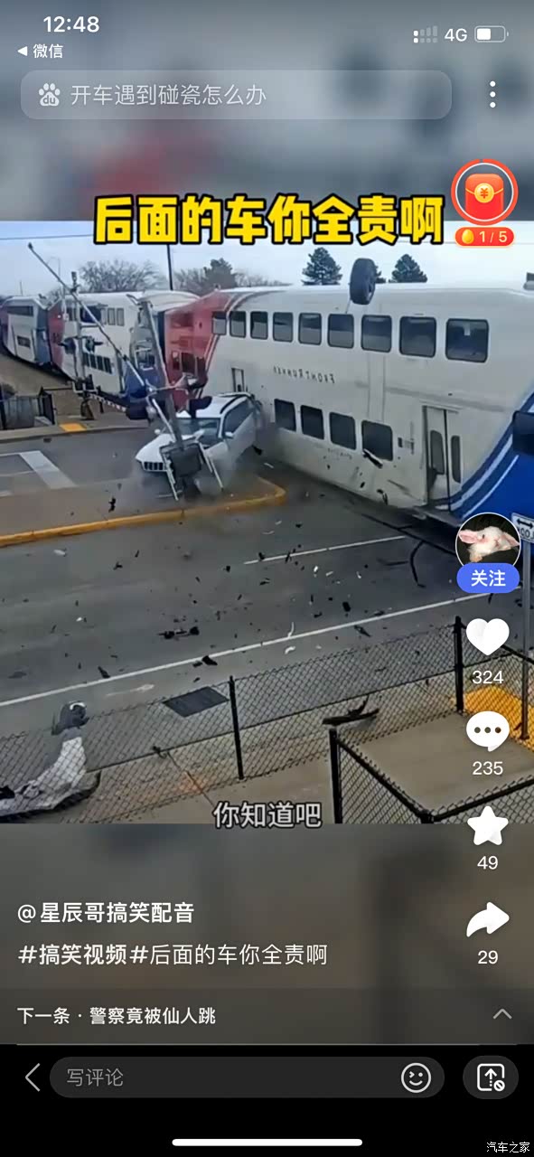 看到一个视频,还好国外老哥跑的快,也不知道怎么想的不倒车让火车撞,确实自由光挺硬实的,火车撞了车头还那么完整