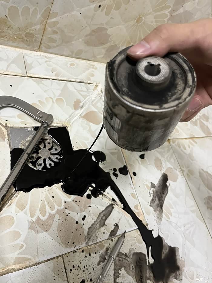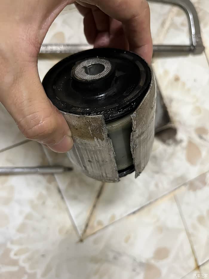 8万公里328换下来的开裂的下摆臂液压衬套。今天暴力拆解,看看里面到底啥构造。