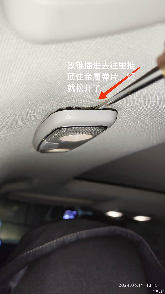阅读灯的拆装也有技巧的,硬撬会把卡簧撬歪了,我就是把它撬歪了,不过还好,是金属的,可以校正。