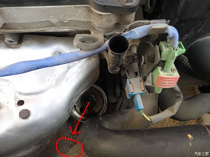 取下机滤后,红圈处还有不少机油,可以继续抽。