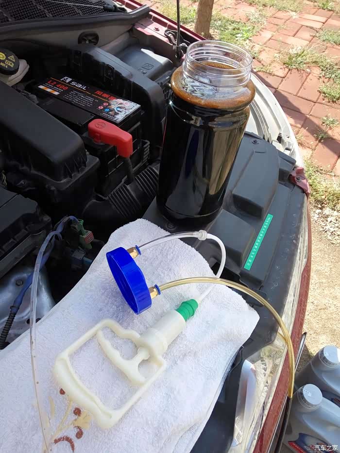 由于没有设备放机油,没有条件接市电使用电动抽油器,同时为了保护车上电瓶未采用车载电源抽油器,因此本文仅描述手动抽油器。准备抽油前,请将车辆跑一段时间,目的是增加机油的流动性,停车后请等待20-30分钟,避免发动机因为过热造成烫伤隐患。
