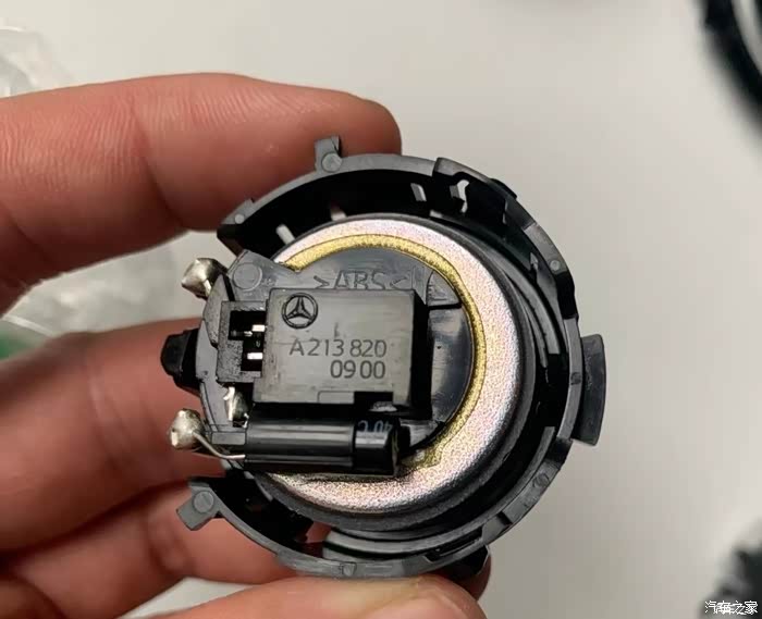 新奔驰的音响系统总体上与老款是一致的,只不过协议和车门喇叭的形状有所变化,协议这东西大家都不关系,着重说一下车门喇叭,车门中音喇叭的尺寸是没有变化的,都是4存的。只不过支架的形状从原来的三角支架变成了圆形支架,大家看照片一看便清楚了:
