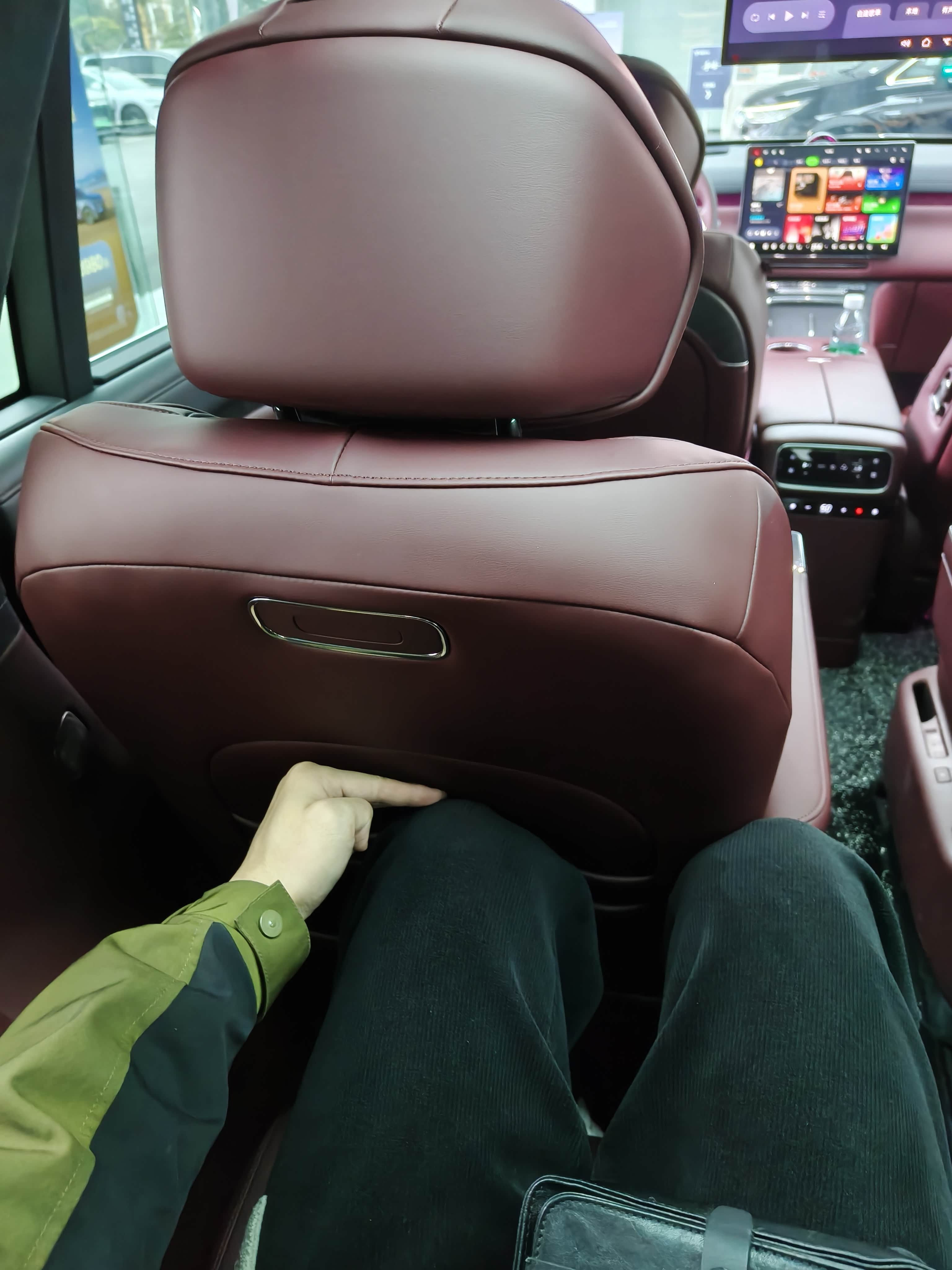 🟢【二排操控面板】:座椅的通风加热按摩等调节、电视、空调、门等各类控制全部集成到二排扶手上的屏幕上,除了看起来高端,实用性真的很一般👎,每次还要先划拉点亮屏幕,再去一级一级选择、操作,很麻烦,我感觉完全是为了节省成本。
