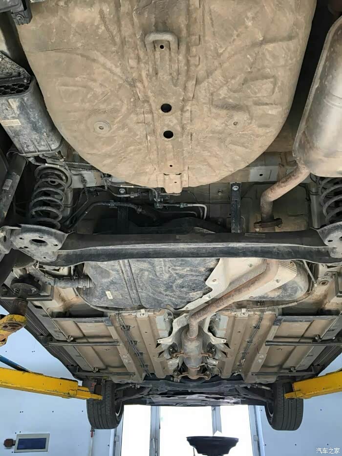 放机油了,发动机底盘,不过安装护板了,看不见了,护板很实用,保护发动机,看到上面的伤痕就知道有多重要了,油底是存放机油的地方,如果泄露,不单单是更换的问题,而且整个电动机也要面临整体维修的境地,费时 费力 费钱
