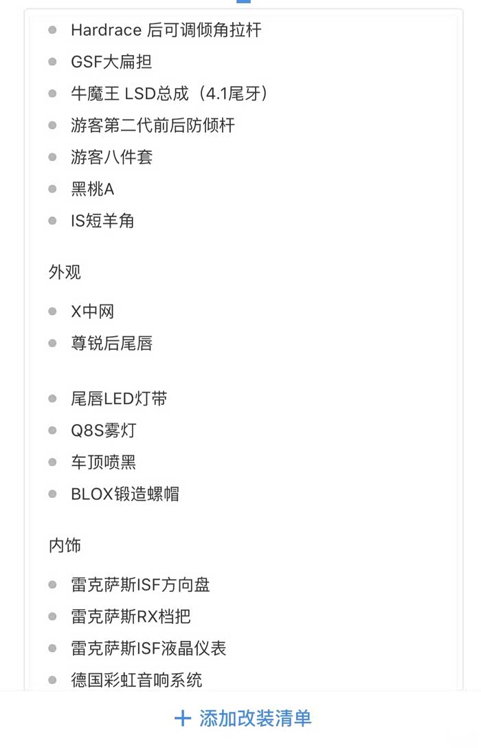 作为过路人,我觉得这个车小改玩玩还是可以的,但是如果重改就要想清楚了,要么直接放弃换车玩,要么就义无反顾的重改下去,认识我的人都知道,每次别人问我这个车怎么改怎么改,我都是劝退换车的,因为我觉得如果你不是真的喜欢这个车的话,还是放弃吧,要改好他,也许你要付出比改好其他车的代价更大,当然如果你用心对待他,他也会给你出乎意料的反馈!
