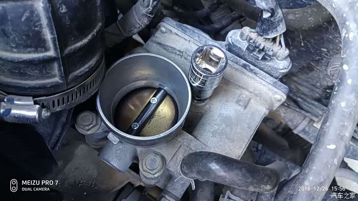 松开空滤扣子 松开喉咂 很脏啊... 准备好套筒准备拧下节气门组件螺丝 13mm 1/2套筒