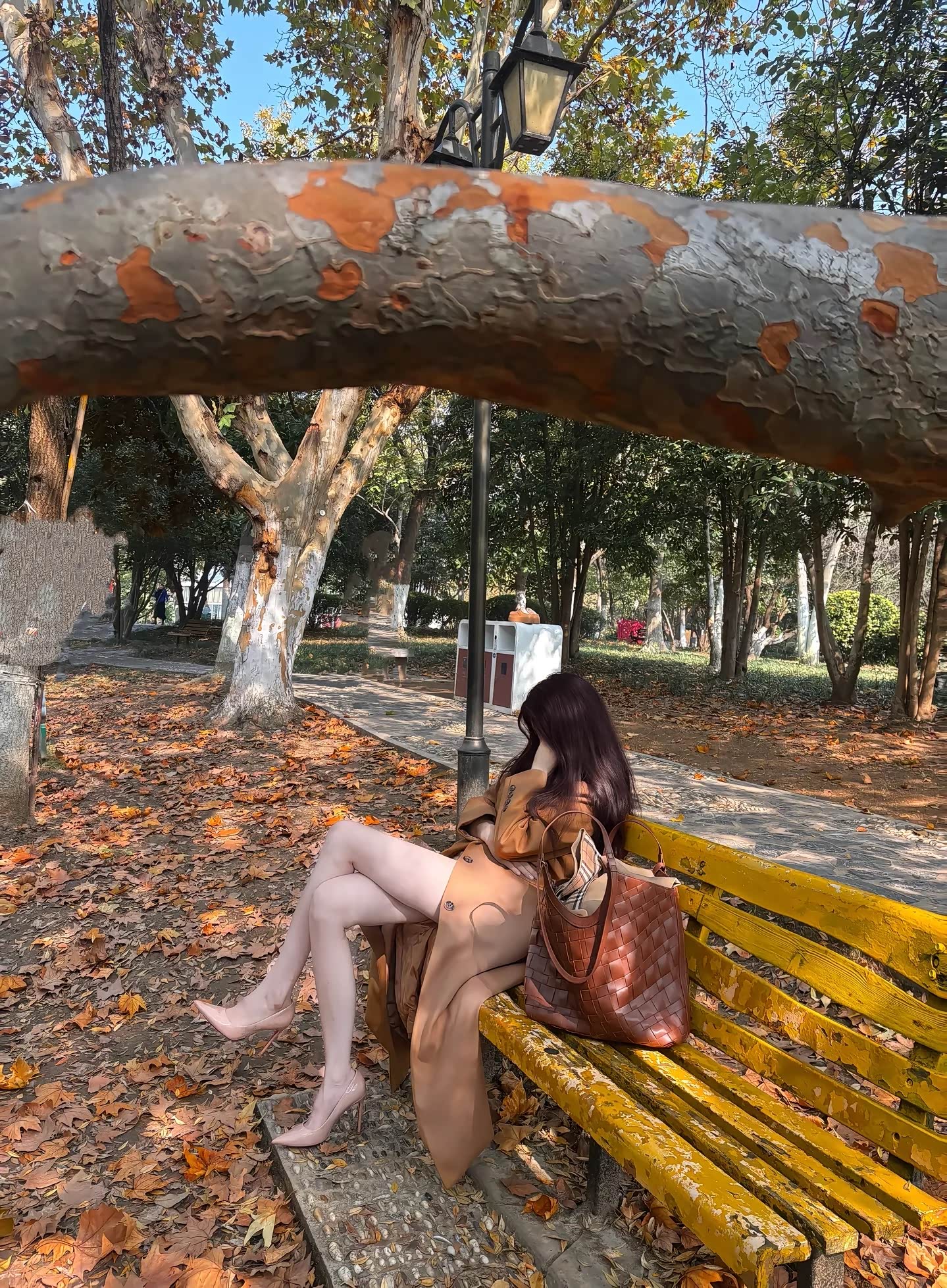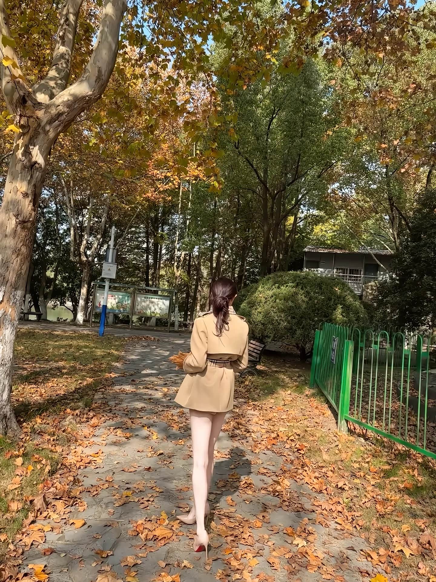 累了,我们便找了一处厚厚的落叶堆坐下,像是坐在一张天然的金红色地毯上。她翻看着相机里的照片,轻声感叹:“这片枫林,配上这件大衣,感觉拍出来的不是照片,而是一首秋天的诗。”