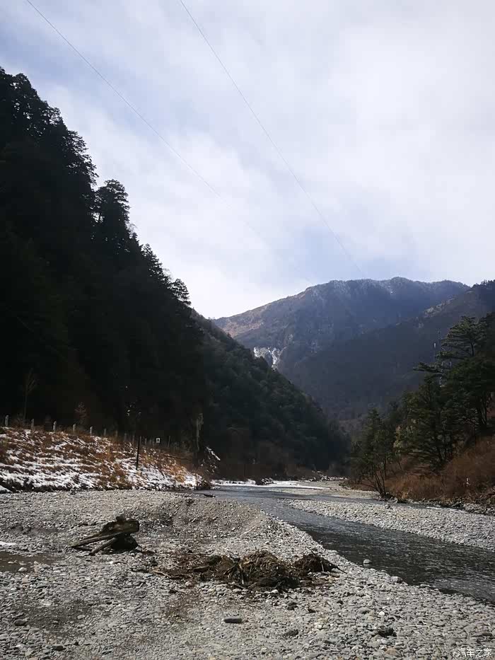 高速上车多,映秀下了高速就对了,车少的很,省道过了卧龙后在海拔2000多的时候阴山面还有点把点积雪,路上有暗冰,开慢点,走前车车辙没得问题,快到邓生沟的时候不想再往上了,就靠边不影响交通的地方停车耍了下!