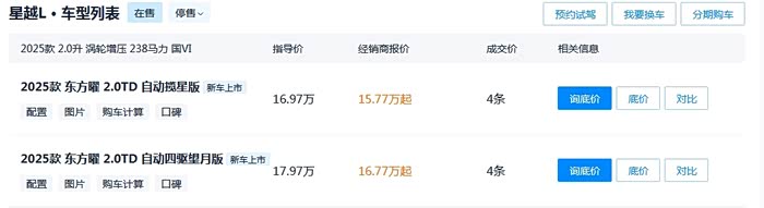 25款星越L在多个方面进行了改进和优化,在外观设计上更加年轻和时尚,内饰质感上提档升级、内饰功能和舒适上补足短板,智能配置上看齐国内顶流水准,目前2025款仅有两个2.0T车型,价格为16.97-17.97万,相比2024款贵了一些,但是配置更丰富,智能化更高。