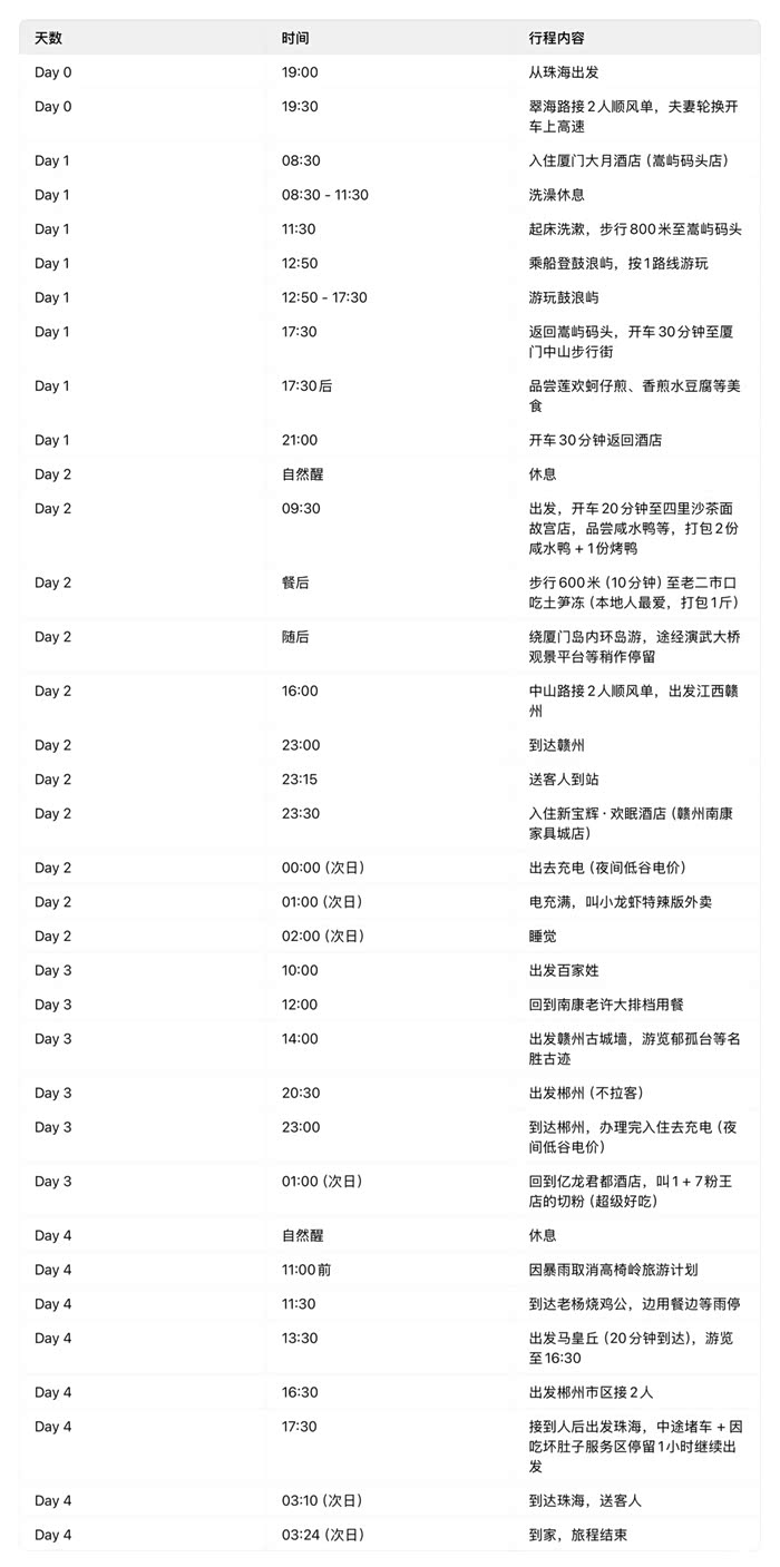 主路线:珠海→厦门(5月1日)→赣州(5月2日-3日)→郴州(5月4日-5日)→返程珠海