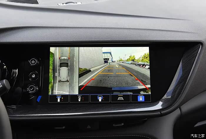 接下来是360度全景影像系统,这对于很多新手司机或是不擅长空间判断的驾驶者来说是一个非常实用的功能。昂科威Plus装备的这一系统能够在车载显示屏上呈现出车辆周围的全景视图,无论是停车还是通过狭窄路段都能提供全方位的视觉支持,显著提高了操作的便捷性和安全性。