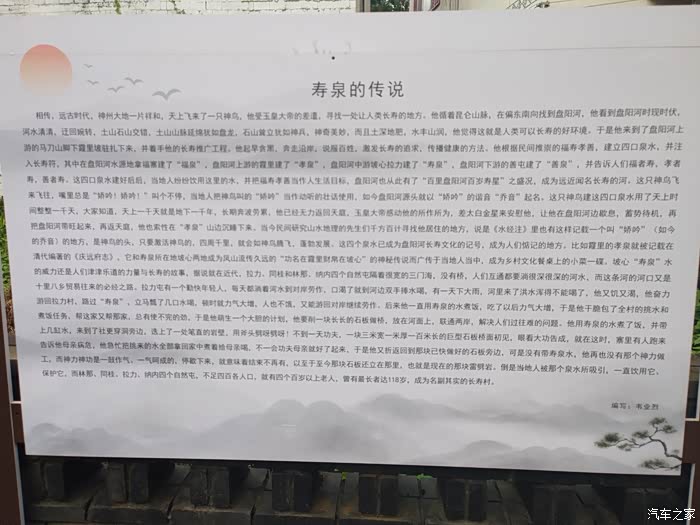 沿着拉力屯小路走到山脚,可以看到一口井,名为“寿泉”。井壁用石头砌成,井口呈圆形,直径2米左右,用围栏围了起来,游人只能在围栏外看着井水。井水清澈透明,水面距离井口1米多高。井里面安放了一个用石头凿成的元宝。泉水从石元宝下咕嘟咕嘟往上冒。这口井年代久远,拉力屯的村民都是喝这里的水长大的,村里有很多长寿老人,因此名叫寿泉。寿泉周边立了12块寿字石碑,石碑底色是黄色的,高2.5米至3米不等,宽1米多,每块石碑上的寿字是红色的,字体均不相同,让人在感受长寿文化的同时,还可欣赏书法的魅力。