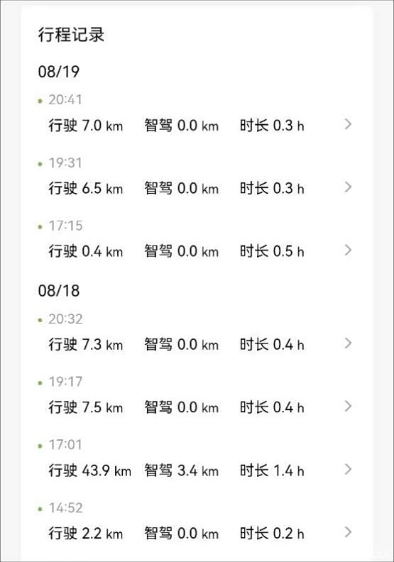 从单次行程来看,可以展示具体的行程路线图,除了总里程、智驾里程和时间外,还有平均、最高车速以及百公里能耗,行驶数据展示不可谓不丰富。