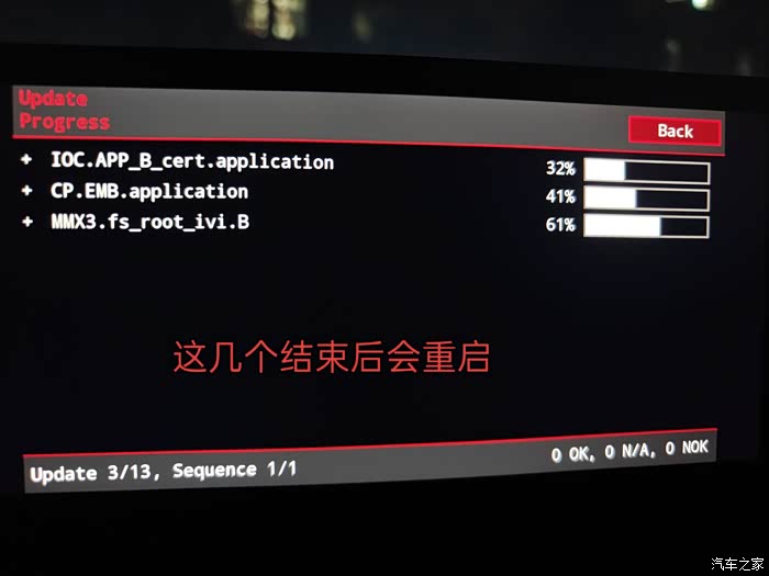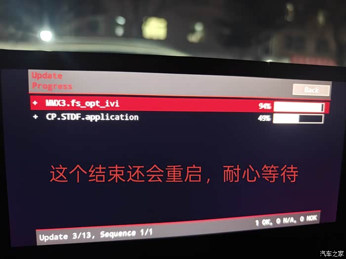 此时就将进入升级过程,升级过程比较长,建议在升级前将车辆停放到合适位置,并保持发动机启动状态,防止在升级过程中车辆电量不足。