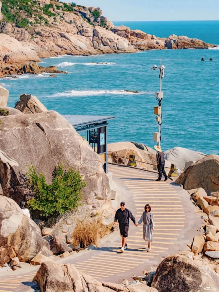 进入栈道前就能看到,旁边的乱石也可以拍大片,在亭子里看风景,让看风景的人在背后拍你,可以和大海蓝天一起合影!