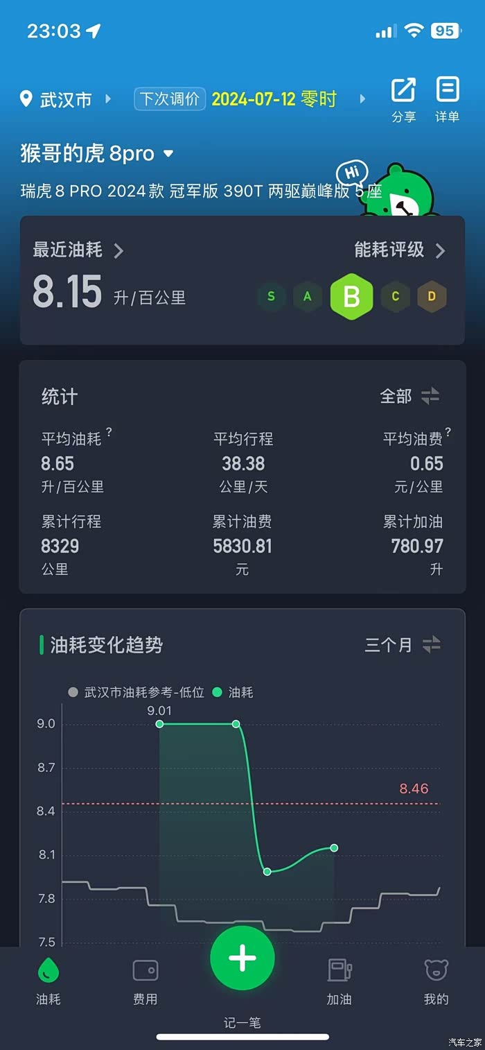 车子是2023年10月底提的,冠军版390T 两驱巅峰5座!指导价151900元,有置换,使用了厂家金融两年免息贷款,开票价105900元,目前行驶了8824公里。