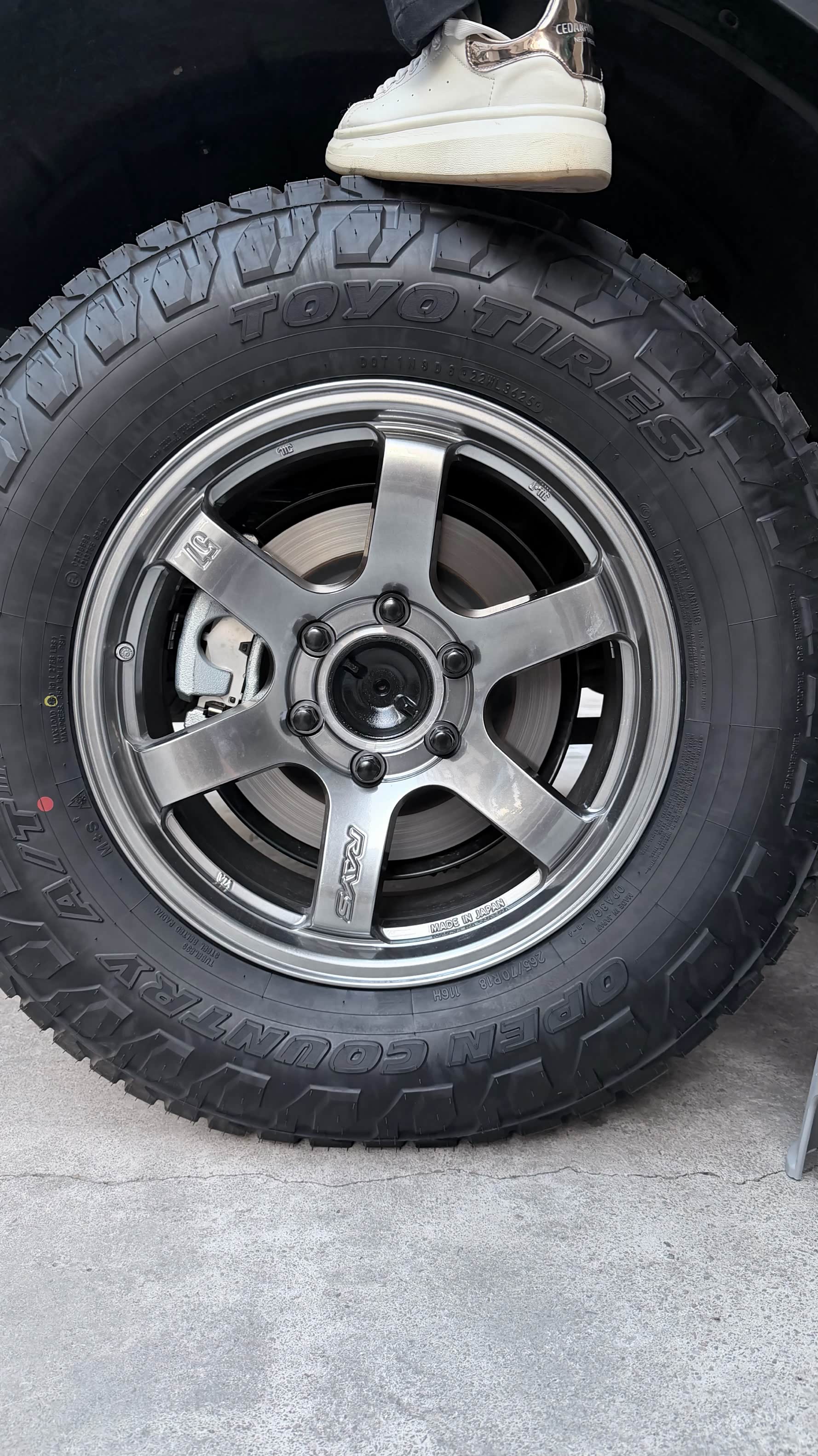 换下国锻轮毂后,入手了日本rays57重量10kg一只。效果不错65换到70扁平比。方向盘偏左了,亨特定位机上去只能用lc300数据,完美纠正。