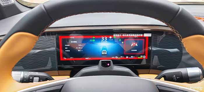 在辅助驾驶开启后,双手必须抓住方向盘,离开几秒没关系,但是时间长一点,车机就开始提示报警,要求你接管。