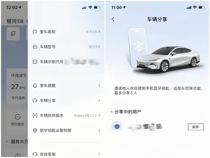 虽然车子钥匙只有2把,但是车友却可以通过银河APP,进行车辆分享。需要用车的家人和朋友注册过银河APP后,车主可以通过车辆分享功能,邀请最多5人通过银河APP控制自己的银河E8。手机蓝牙钥匙、远程可控等都可以用,更重要的是被分享的用户仅仅有车辆使用权,并不会显示车主的一些隐私信息(例如行车日志)。