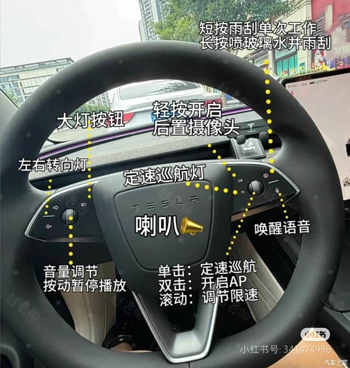 摄像头按钮:按一下打开所有摄像头监视画面雨刮:按一下刮一下,长按喷玻璃水,按完后马上按左侧滚轮