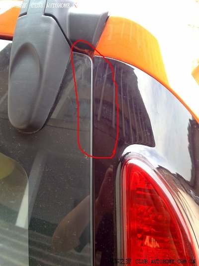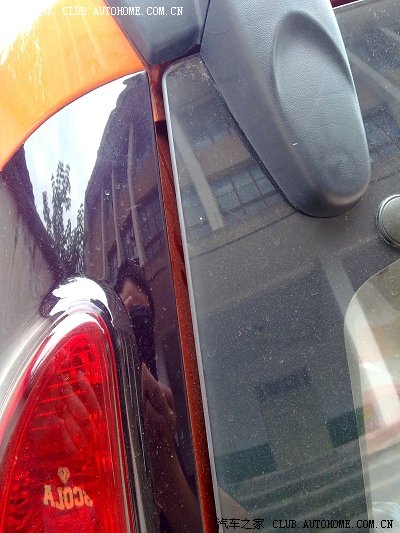注意看红圈里面位置,玻璃已经和后组合尾灯亲密接触在一起了,由于我关了几次,灯罩已经有一点点的擦白
