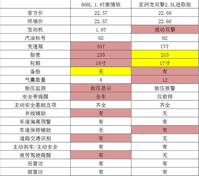 去掉508L的优势项目后,同价位508L和亚洲龙配置超详细对比