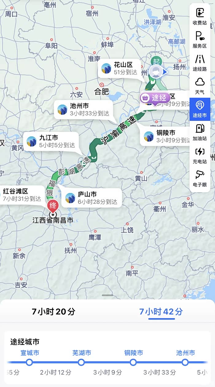 3、途径城市:马鞍山、宣城、芜湖、铜陵、池州、九江