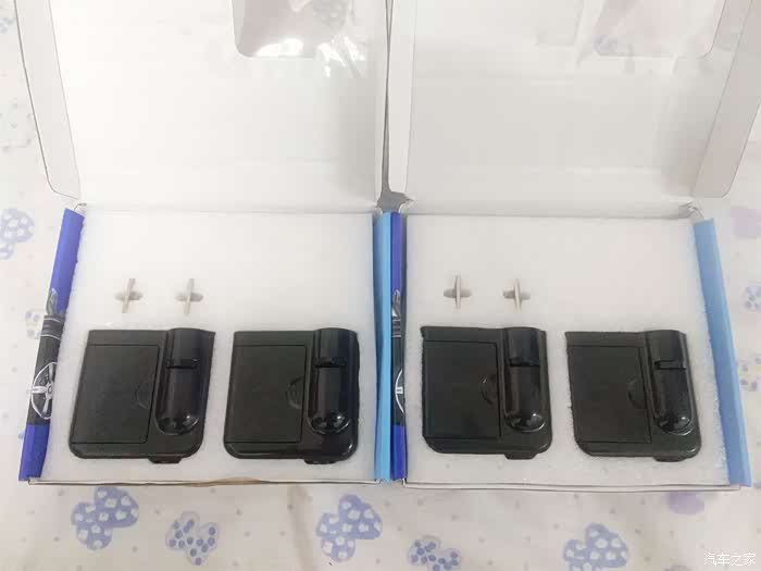 第一组个性迎宾灯,装7号电池的。可以直接粘在我们的车上,图案很美,但是需要电池,不够完美。